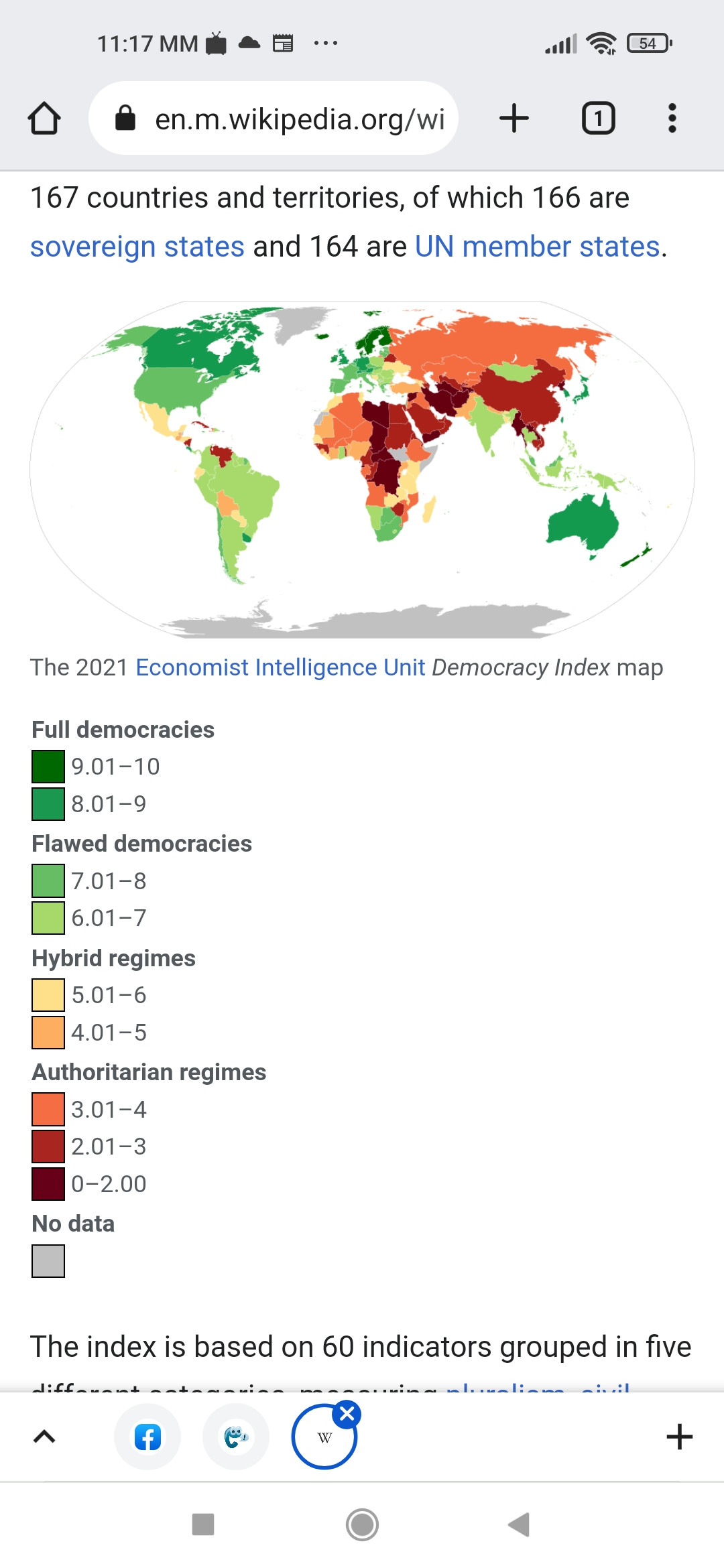 Όπως βλέπεις η Ουκρανία είναι πιο δημοκρατική από την Ρωσία. Εκδημοκρατιστηκε δύο κουτάκια μέσα σε οκτώ χρόνια. Όταν απελευθερώθηκε από την ρωσοφιλη κυβέρνηση του Γιανουκόβιτς. Σε οκτώ χρόνια δύο χρώματα διάφορα είναι τεράστια αλλαγή για μια χώρα που ήταν τόσο απολυταρχική όσο η Ρωσία.Η Ουκρανία δυο κουτάκια πάνω από τη Ρωσία με το ζόρι; Τι, δεν είναι η Ουκρανία η δυτικότροπη, δημοκρατική, ελεύθερη, ανοιχτόμυαλη, προοδευτική lgtbqfriendly χώρα που μας παρουσίασες ότι είναι έτοιμη να μπει στην Ευρωπαϊκή ένωση με δόξα και τιμές ενώ οι χώρες που τρώνε κυρώσεις βρίσκονται πιο πάνω στη λίστα σου; Δεν το πιστεύω! Πέφτω από τα σύννεφα!