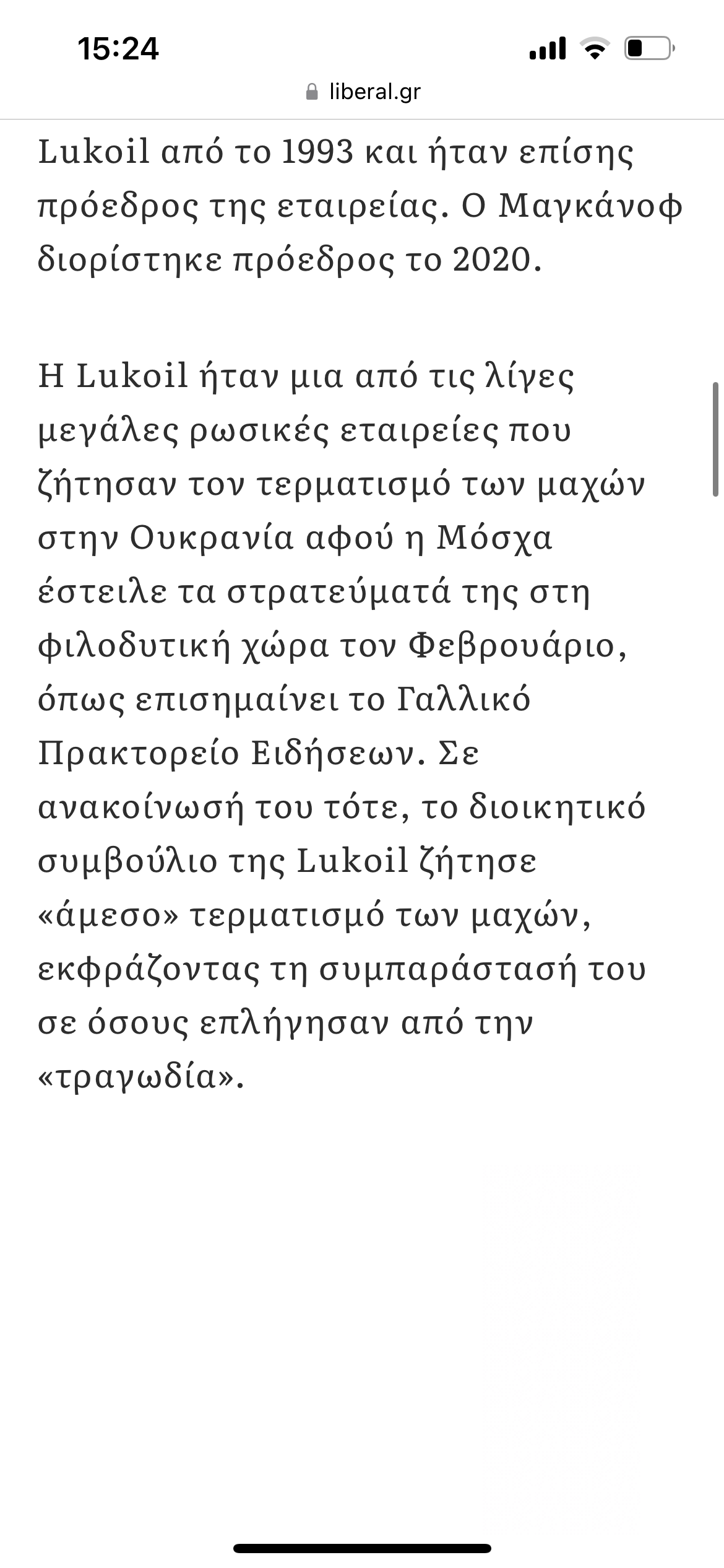 Η ρωσική Lukoil, μετά από αναφορές ρωσικών ΜΜΕ ότι ο πρόεδρός της Ραβίλ Μαγκάνοφ, σκοτώθηκε αφού έπεσε από το παράθυρο νοσοκομείο, με ανακοίνωση της δηλώνει της βαθιά της λύπη για τον θάνατο του, που αναφέρει ότι επήλθε από «σοβαρή ασθένεια».