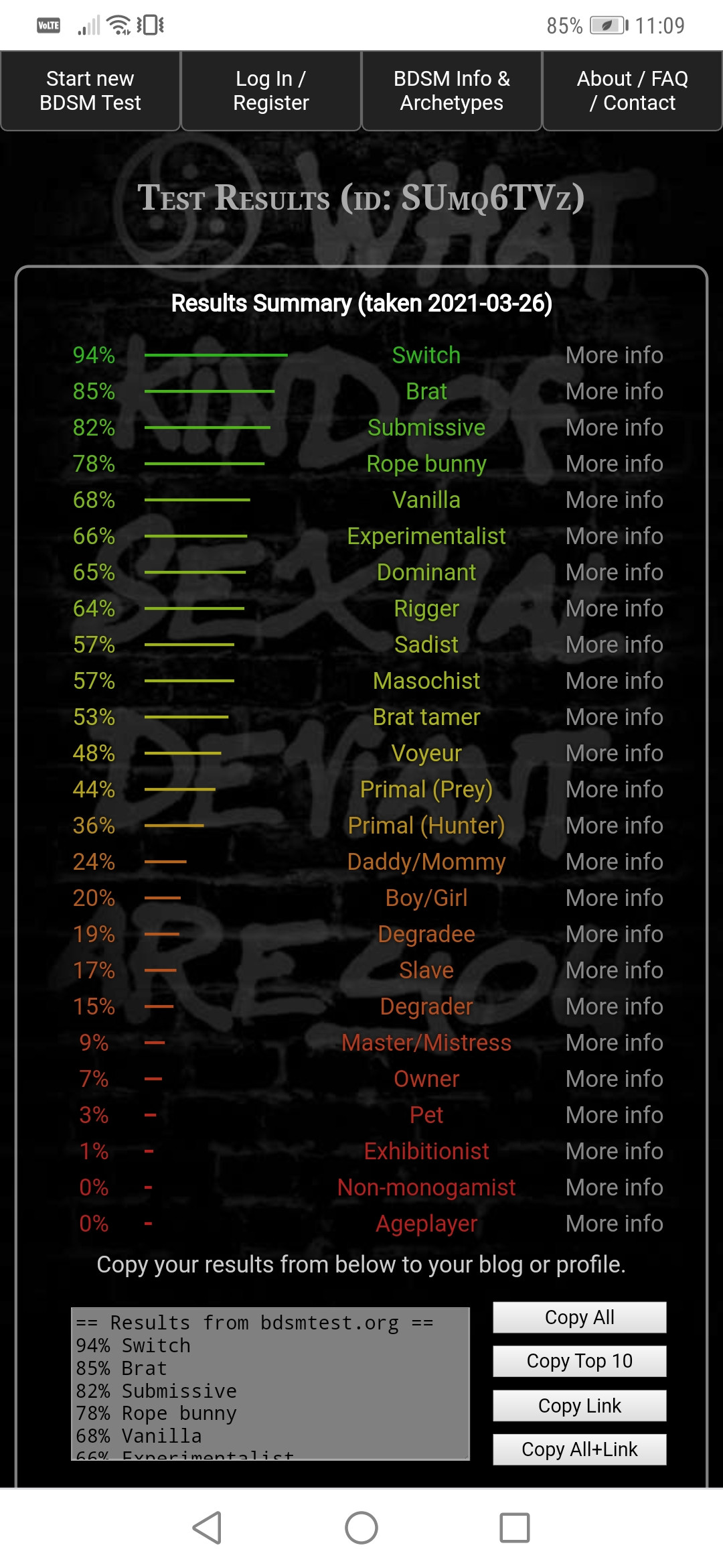 == Results from bdsmtest.org ==