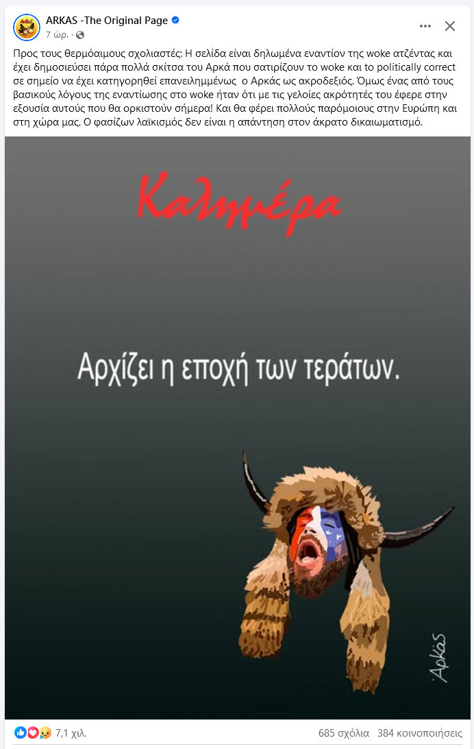 Το είχα πει και θα το ξαναπώ. Ότι ήταν η αντιφα, σήμερα θα είναι η antiwoke. Η ακρότητα οδηγεί στην ακρότητα και η τρέλα στη τρέλα