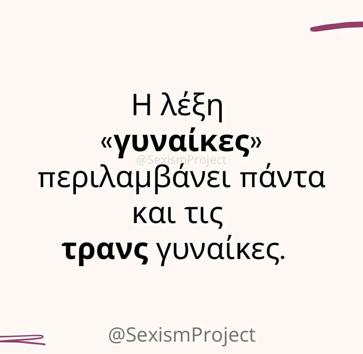 Εμένα να με λέτε αστροναυτη τότε.Δεν θα αναλύσουμε το αν είναι ή δεν είναι γυναίκα, εφόσον νιώθει γυναίκα και θέλει να (αυτο)αποκαλείται έτσι και σεβόμενοι το δικαίωμα της αυτοδιάθεσης και του αυτοπροσδιορισμού των ατόμων, θα πρέπει να την αποκαλούμε «γυναίκα.»