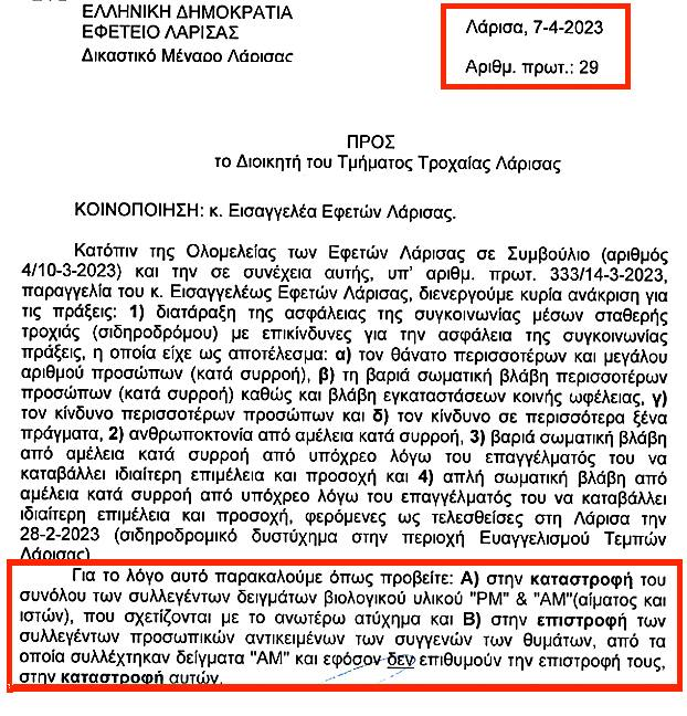 Το χαρτι απο την εισαγγελια Λαρισας , εντος της μαρκαρισμενης παραγραφου γραφει για ατυχημα . Οποτε θα κοινοποιηθουν οι αναλογες διαδικασιες αυτης της περιπτωσης .View attachment 145575
