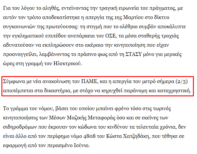 Και ακόμα κι αυτή τη μέρα, που το σωματείο πέραν των όποιων χρόνιων προβλημάτων είναι λογικό να θέλει να απεργήσει για να δείξει τη συμπαράστασή του, προσφεύγει εκ νέου η διοίκηση ώστε να κηρυχθεί και αυτή παράνομη.