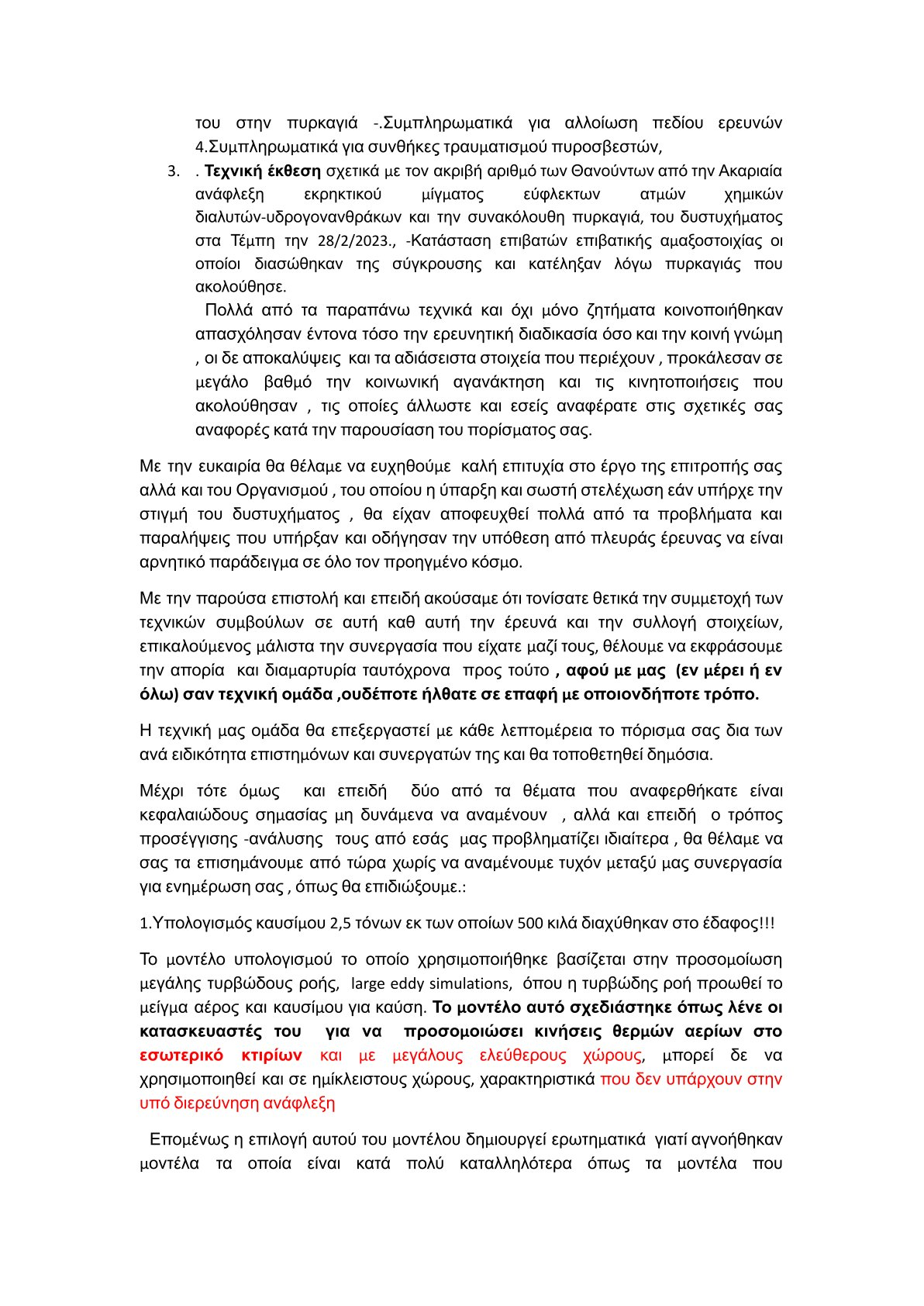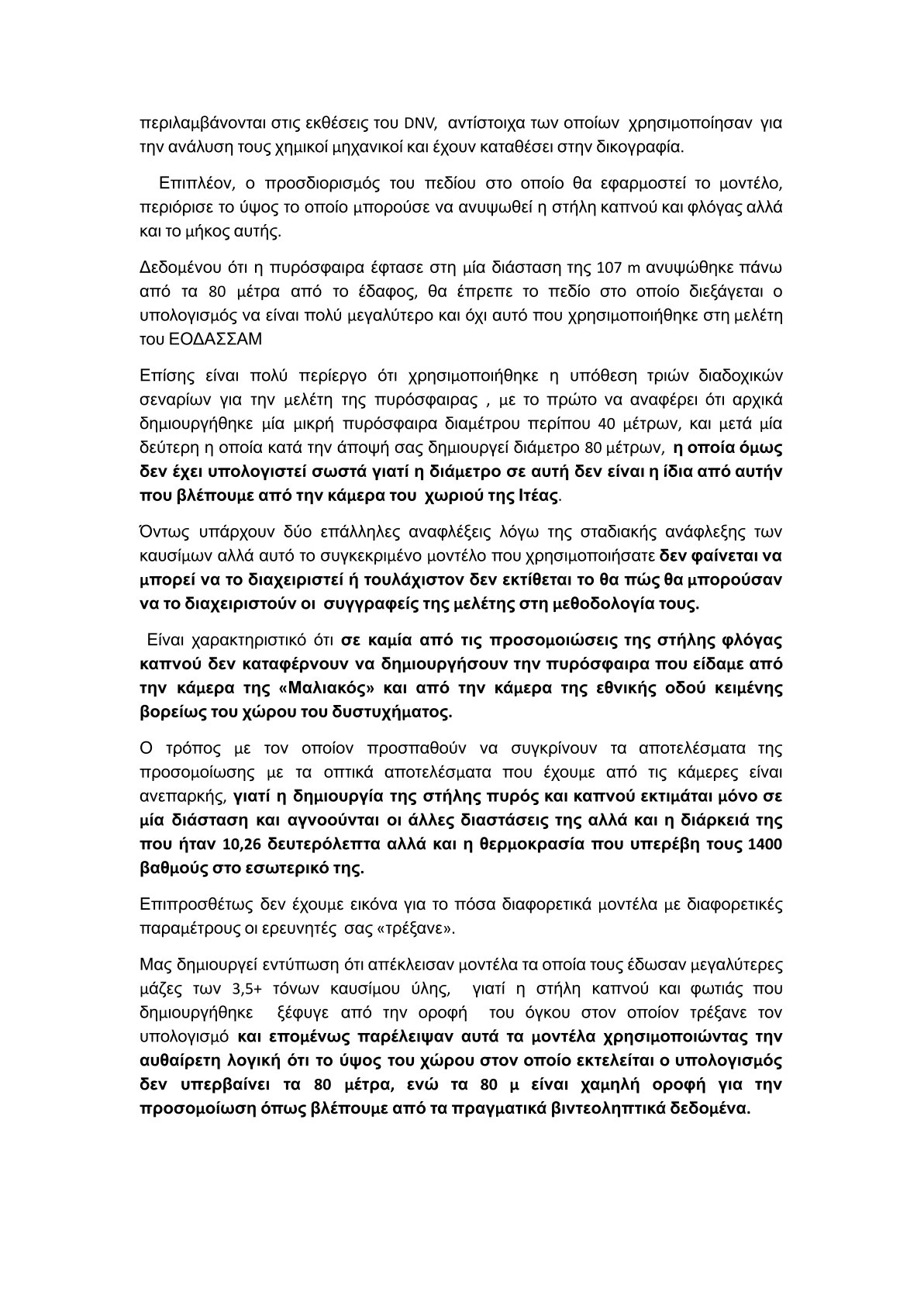 Με λίγα λόγια διαφωνούν κάθετα για τους εκτιμώμενους τόνους παράνομου καυσίμου (πολύ παραπάνω από τους 2,5 τόνους που λέει ο εοδασααμ), για τη μοντελοποίηση της πυρόσφαιρας (ο εοδασααμ χρησιμοποιησε εντελως λαθος μοντελο, το οποιο συνδεεται αμεσα με τους εκτιμωμενους τονους καυσιμου), αλλά κυρίως για τοn αριθμό των ατόμων που επιβιώσανε την σύγκρουση όμως σκοτώθηκαν από την φωτιά, κάηκαν από την πυρόσφαιρα του παράνομου φορτίου, ο Κοκοτσάκης υπολογίζει περίπου 27 άτομα (το οποίο προκύπτει από συνδυασμό ιατροδικαστικών εκθέσεων με τεχνική ανάλυση στατιστικών μοντέλων και ανάλυση ηχητικών καταγραφών προς 112), ενώ ο εοδασααμ λέει αυθαίρετα μόνο 5-7 το οποίο δεν βασίζεται κάπου αξιόπιστα.