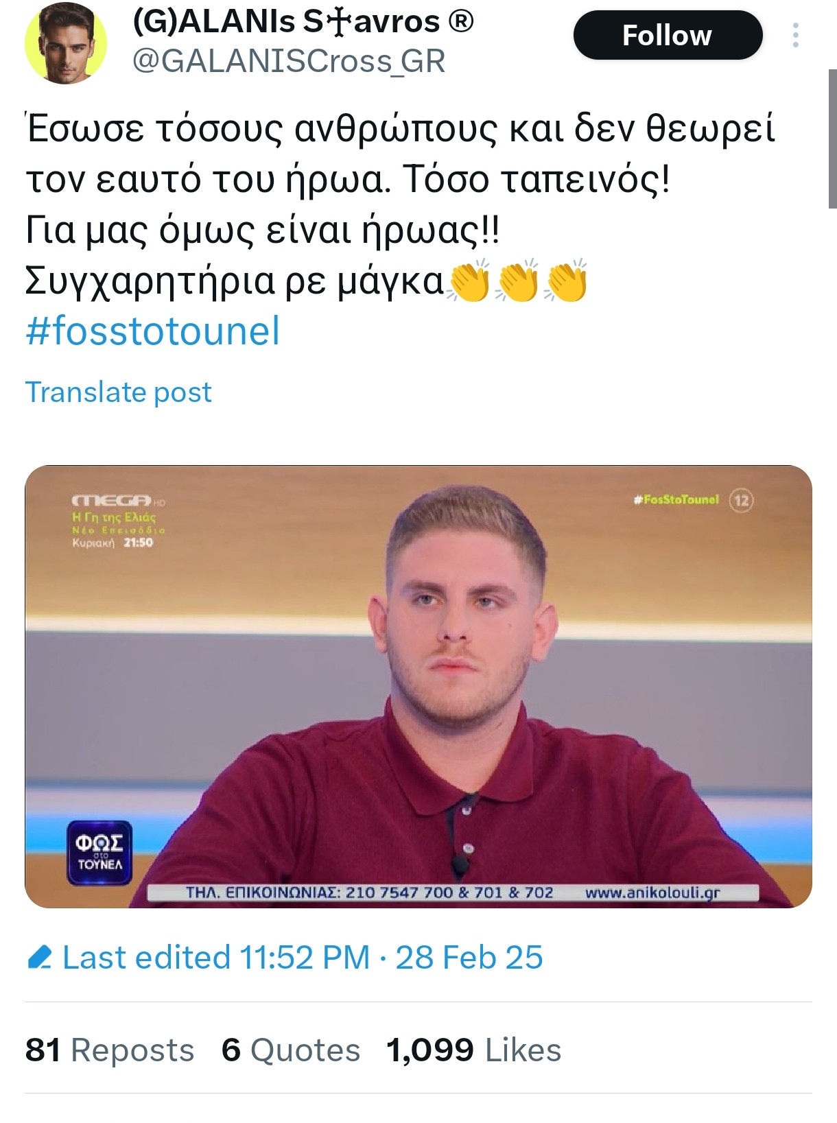 Δεν έχω ιδέα για το παρασκήνιο αλλά μάλλον κάτι δεν μας έχουν πει. Δες εδώ πώς τον χαρακτηρίζει ο Πλακιας σε σχόλιο απάντηση στο ποστ του βεραμον από κατωΘυμάστε τον ήρωα των Τεμπών; View attachment 145762