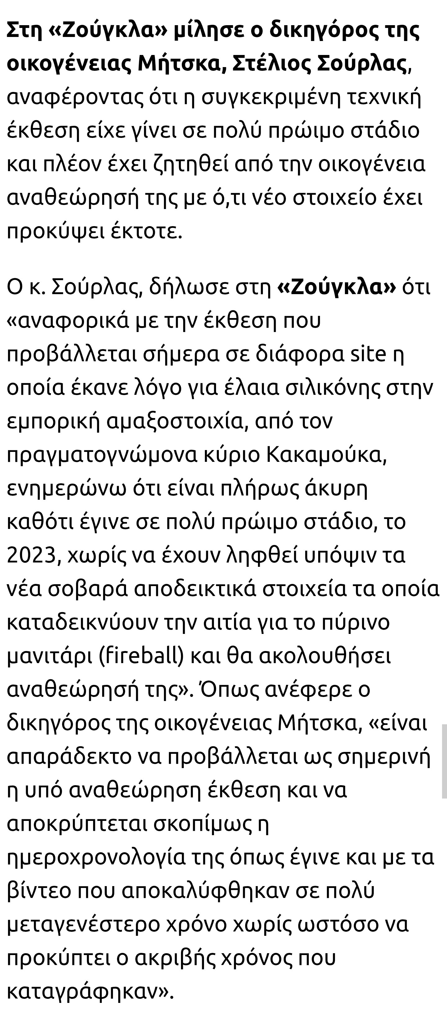 «Είναι απαράδεκτο να προβάλλεται ως σημερινή η υπό αναθεώρηση έκθεση και να αποκρύπτεται σκοπίμως η ημεροχρονολογία», αναφέρει ο δικηγόρος της οικογένειας Μήτσκα για την πραγματογνωμοσύνη που είχαν παραγγείλειwww.zougla.gr