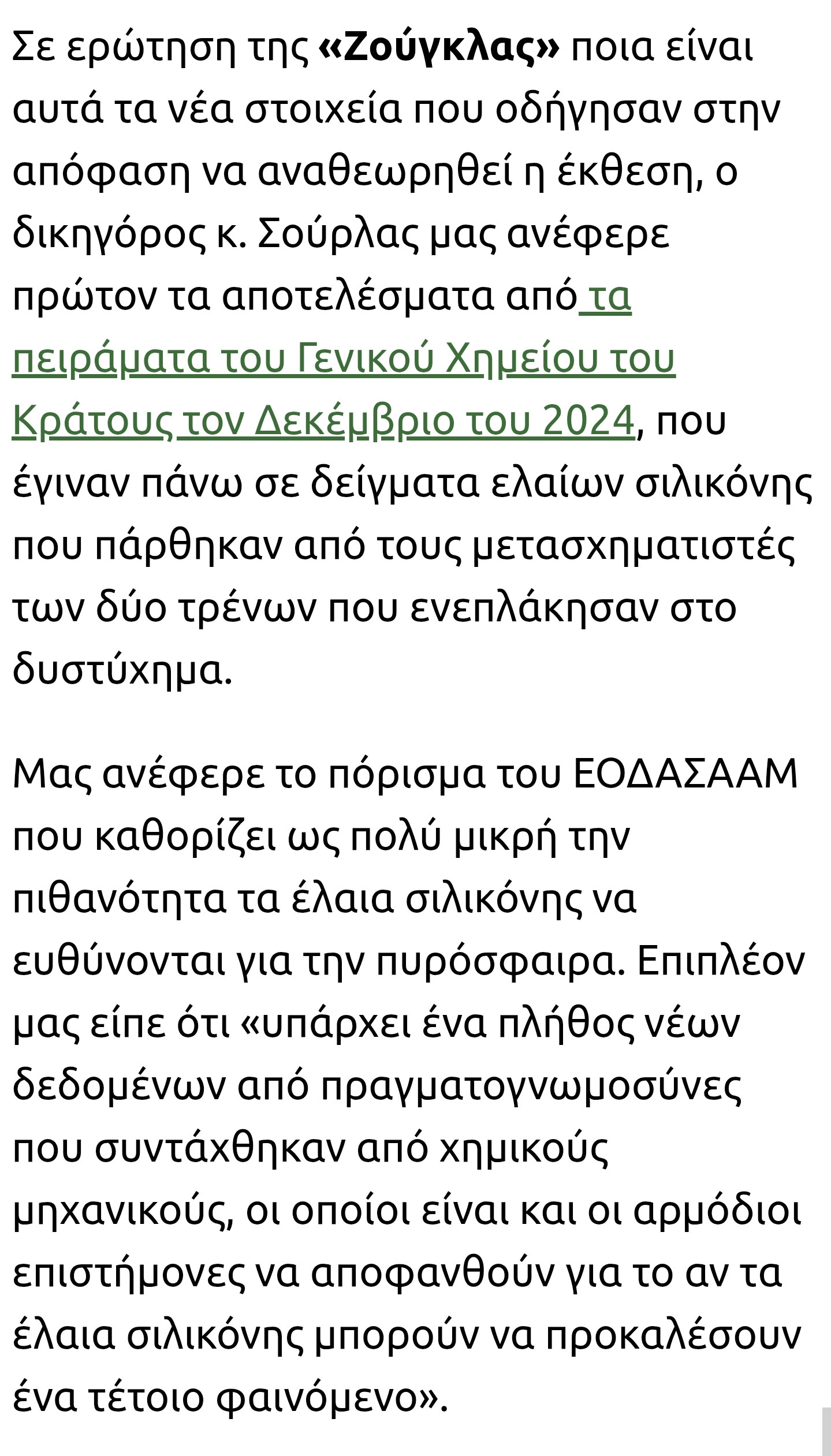 Σιγά σιγά βγαίνει μια άκρη στο περίεργο, που κάποιοι παράγοντες στο παρασκήνιο θελουν να βάζουν τις οικογένειες των θυμάτων να τρωγονται μεταξύ τους και να θολώνουν το τοπίο. Η ίδια οικογένεια που παρηγγειλε το πόρισμα που βγήκε ξαφνικά στη δημοσιότητα πριν λίγες μέρες, πόρισμα Ιανουαρίου του 2024, και ελεγε οτι δήθεν και καλά τα έλαια σιλικονης φταιγανε και ο μετασχηματιστης, η ίδια οικογένεια τωρα λέει ότι αυτό το πόρισμα βρε παιδιά το έχουμε αποσύρει ως άκυρο και έχουμε ήδη παραγγείλει να γίνει νεότερο ενημερωμένο καθώς από τότε έχουν αλλάξει πολλά και δεν ισχύουν όσα έγραφε.