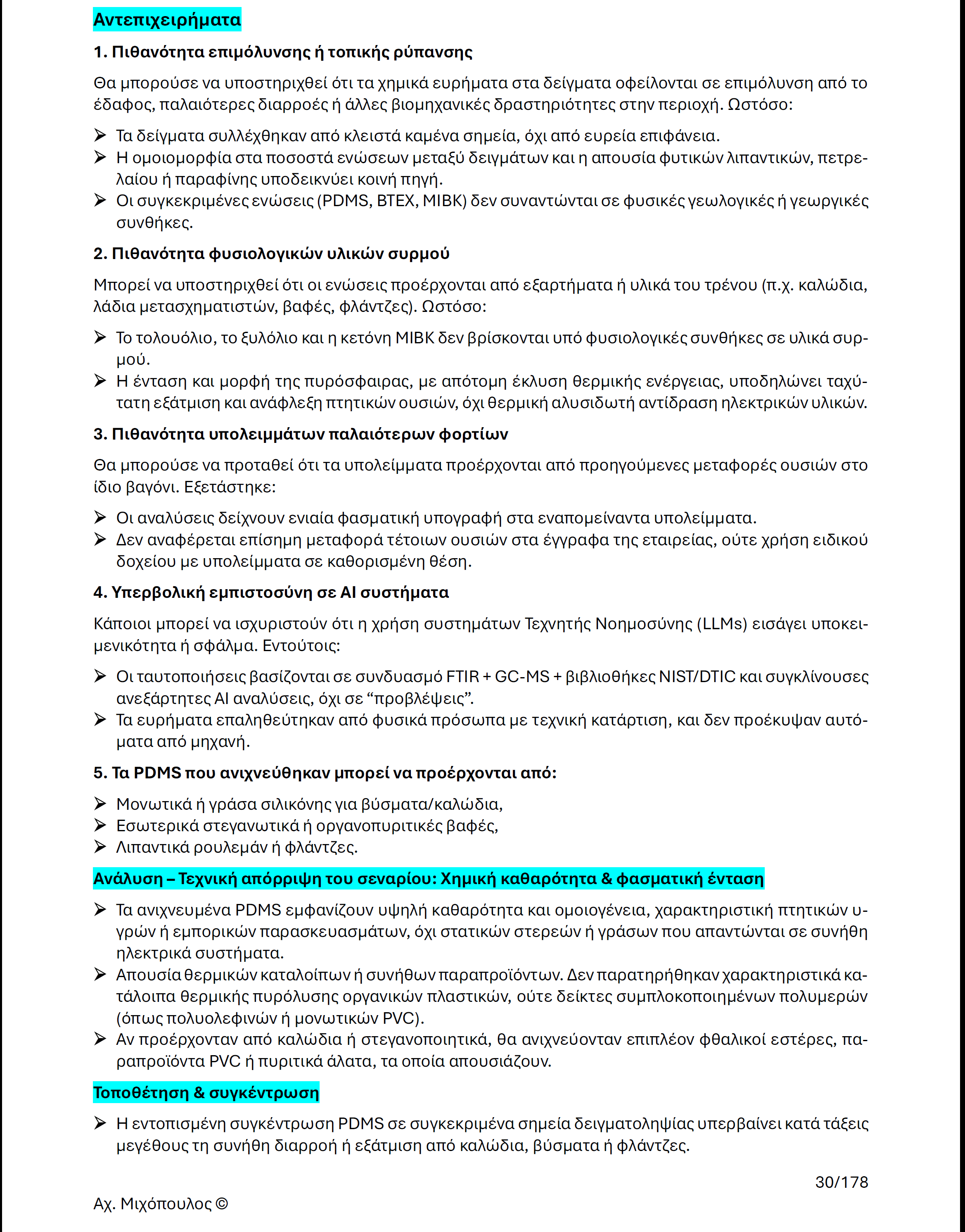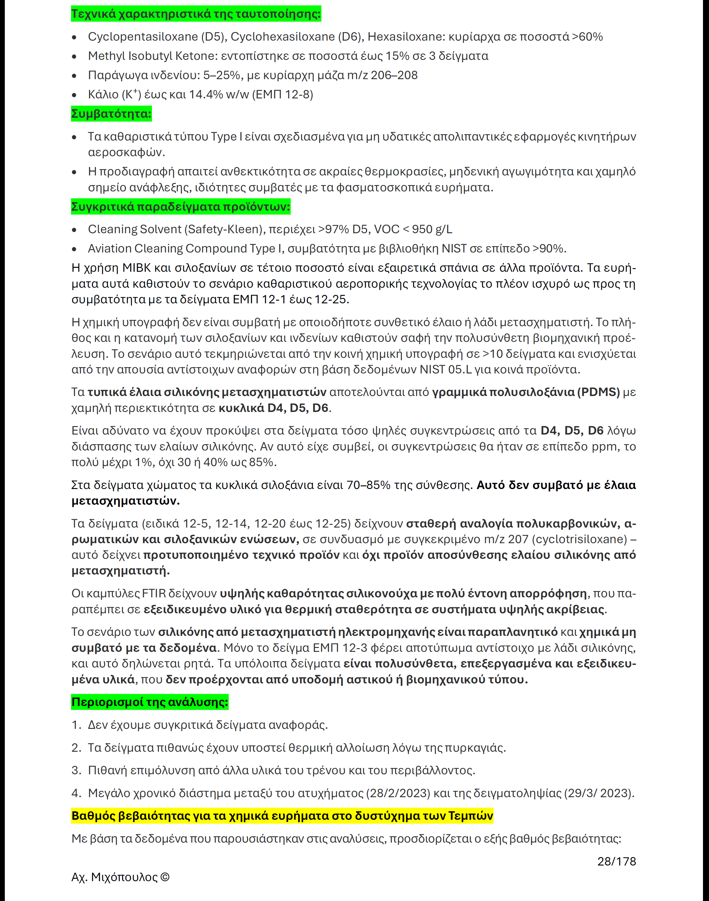 2) το ειδικό καθαριστικό που εντοπίστηκε στις χημικές αναλύσεις είναι καθαριστικό για κινητήρες αεροπορίας και είναι αυτό που προκάλεσε τα χημικά εγκαύματα στους διασώστες/πυροσβέστες.