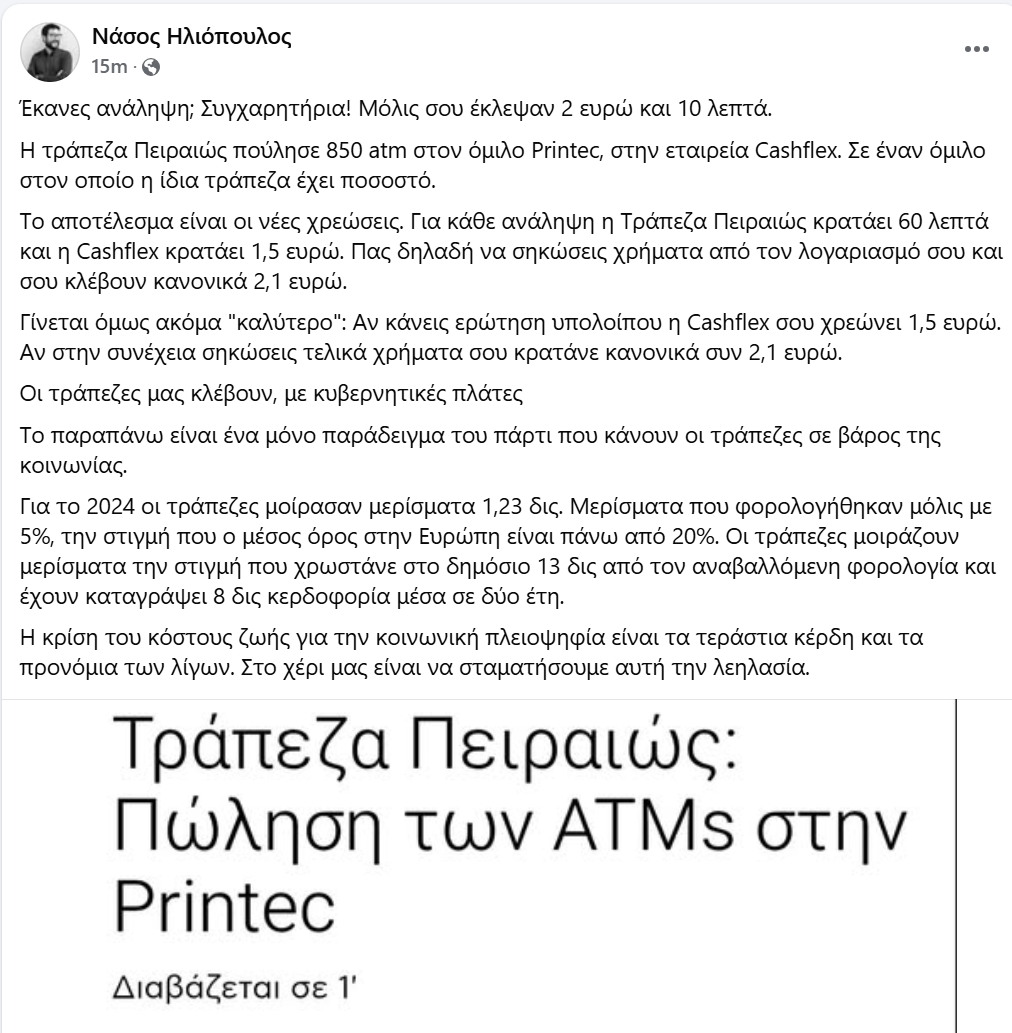 Πειραιώς! Προμήθεια στην ανάληψη μετρητών και από πελάτες της - Techmaniacs