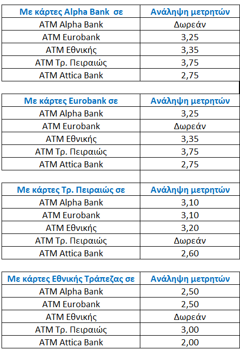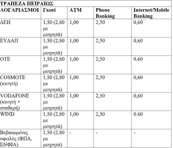 Μερικοί πίνακες που δείχνουν τις χρεώσεις ανα τράπεζα. Για κάποιο λόγο η Πειραιώς είναι αρκετά πιο ακριβή σε όλες τις κατηγορίες σε σχέση με όλες τις τράπεζες. Το βρίσκω λίγο περίεργο να χρεώνει μέχρι και 4 φορές περισσότερο, δεν ξέρω αν κάνω κάπου λάθος όμως οι πίνακες αυτό λένε.View attachment 113107View attachment 113108View attachment 113109View attachment 113110View attachment 113111