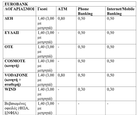 Οι χρεώσεις για πληρωμή λογαριασμών μέσω internet/mobile banking είναι ο ορισμός του "να τα πάρουμε από κανέναν που δε ξέρει".