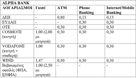 Κορυφή η αλφα που βλέπω για κάποιος λογαριασμούς έχει χρέωση μέσω ίντερνετ αλλά όχι στο γκισέ(!!!)