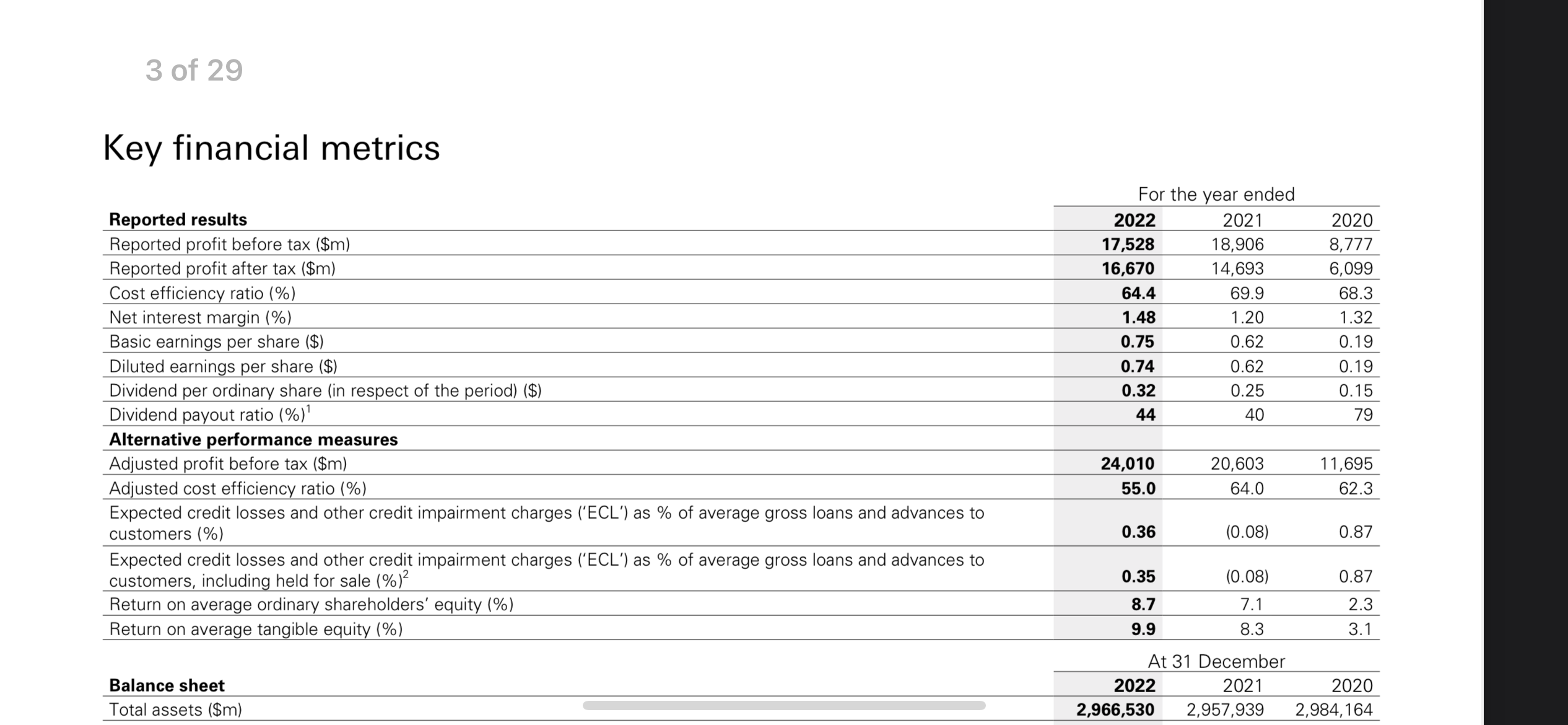 Σήμερα ανακοίνωσε τα οικονομικά αποτελέσματα για το 2022 η αγαπημένη μου τράπεζα , η Βρετανική HSBC. Πάμε να δούμε τα πιο σημαντικά facts και να τα αναλύσουμε.
