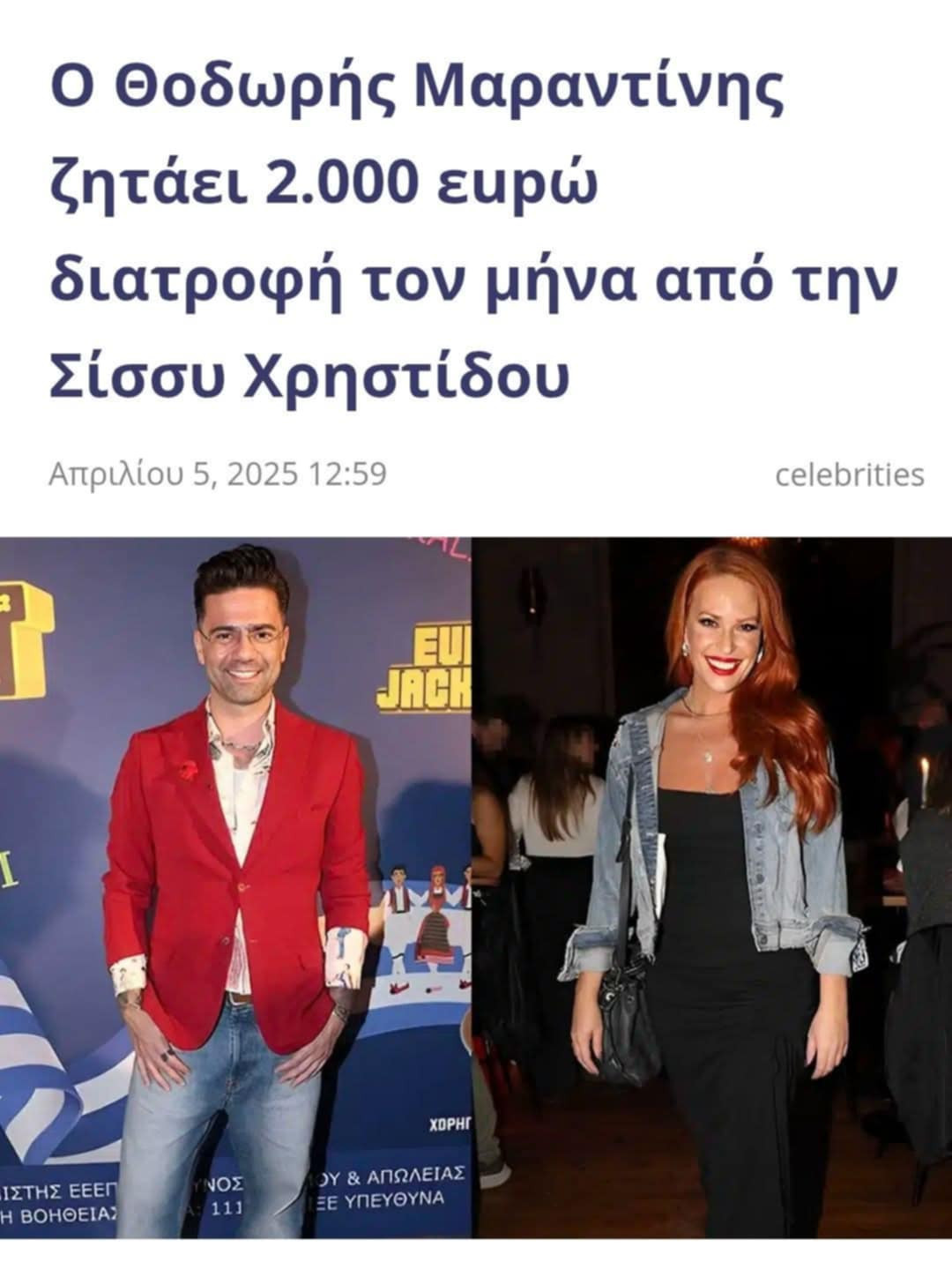 Μόνο από την Espresso βρήκα αυτή την είδηση. Είναι σίγουρα αξιόπιστη;Χαμός στα σχόλια των social περί της ισότητας των δύο φύλων που αυτή θέλατε - πάρτε τη, περί ανανδρίας, περί παιδιών που γίνονται μπαλάκι, περί του ότι το η Χρηστίδου βγάζει περισσότερα από τον Μαραντίνη (του οποίου το κασέ έχει αρχίσει να πέφτει) κτλ κτλ.