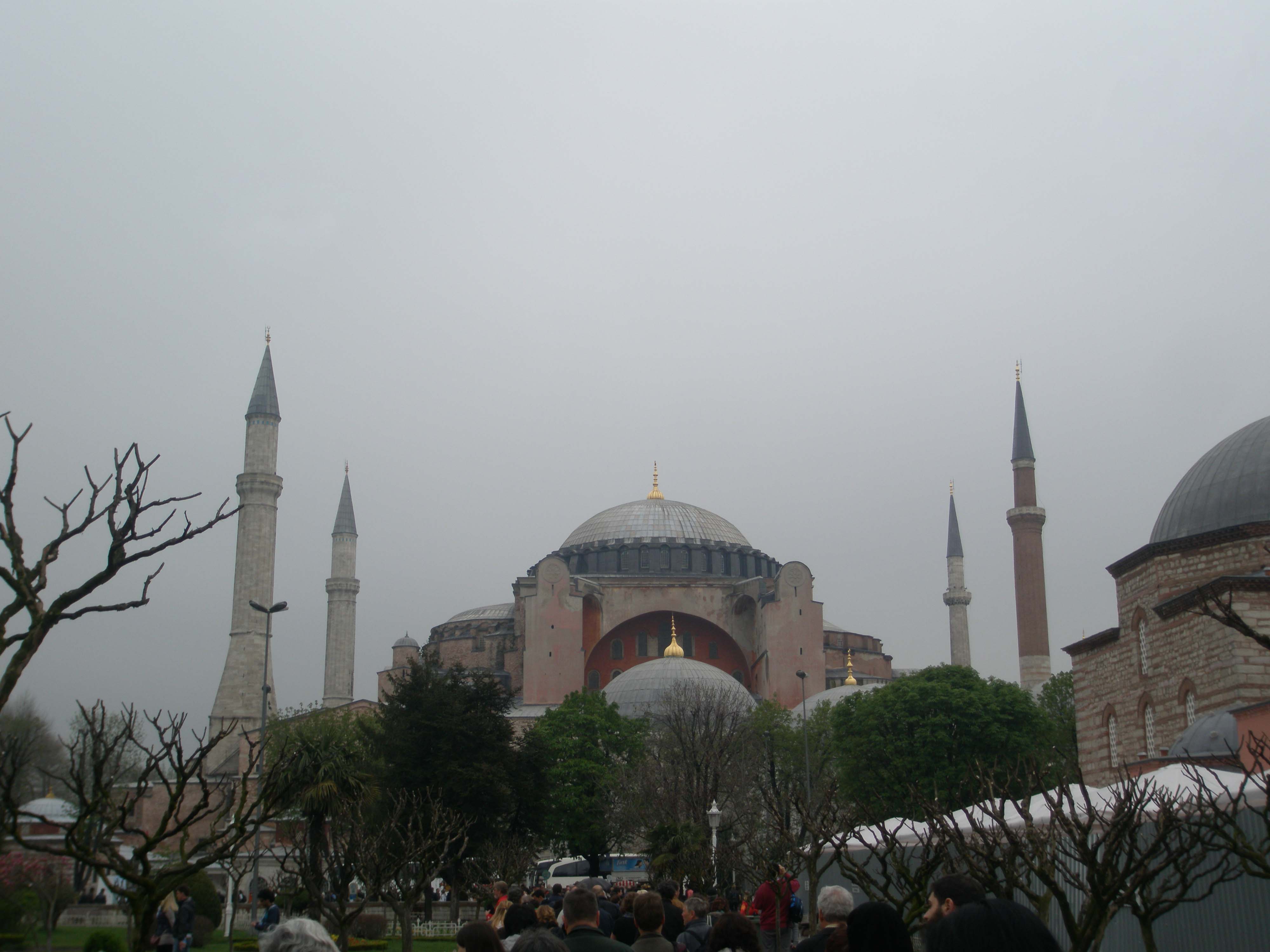 Η Αγιά Σοφιά όπως φαινόταν βγαίνοντας από το Μπλε Τζαμί και το εσωτερικό της όπως φαίνεται από τον γυναικωνίτη (συγκεκριμένα, από τη θέση που στεκόταν η βασίλισσα) :