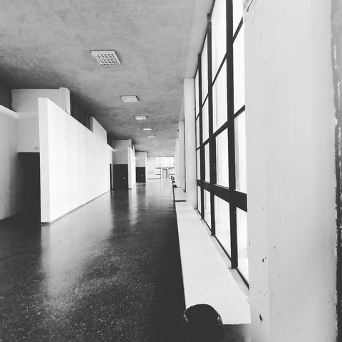 Η γκριζα φωτο ειναι ο διαδρομος πριν τα αμφιθεατρα της νομικης.
