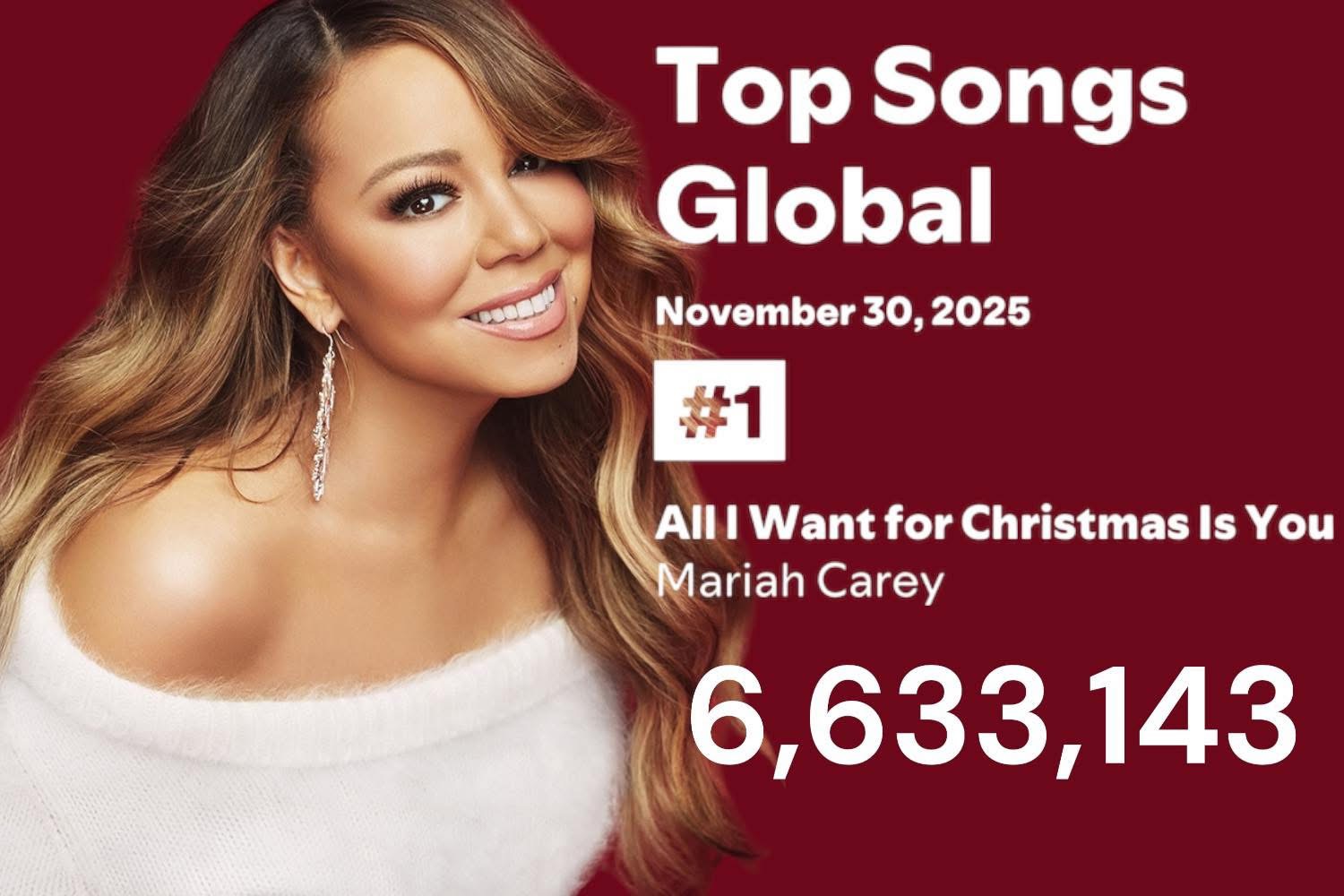 Το All I want for Christmas is you είναι επίσημα στην κορυφή του πλανήτη. Το τραγούδι κατέγραψε σχεδόν 6.7 εκατομμύρια streams τη χθεσινή ημέρα, εκθρονίζοντας την Taylor Swift (The Fate of Ophelia) μετά από 57 συνεχόμενες ημέρες στην κορφή.