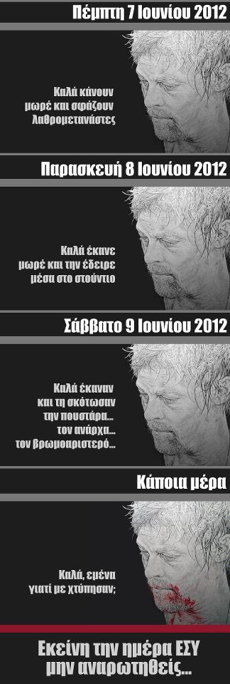 Τουλάχιστον μὲ τὴν ἀκόμα πιὸ βίαια Χρυσῆ Αὐγή, ὅλος αὐτὸς ὁ συρφετὸς τῶν ἀντιεξουσιαστῶν ὁ ὁποῖος τόσα χρόνια μᾶς ἔκανε καὶ μαθήματα «δημοκρατικότητας» μέσα ἀπὸ τὰ ΜΜΕ, θὰ πάρῃ ἕνα πολὺ καλὸ μάθημα ἀπὸ τοὺς ἀκροδεξιούς.