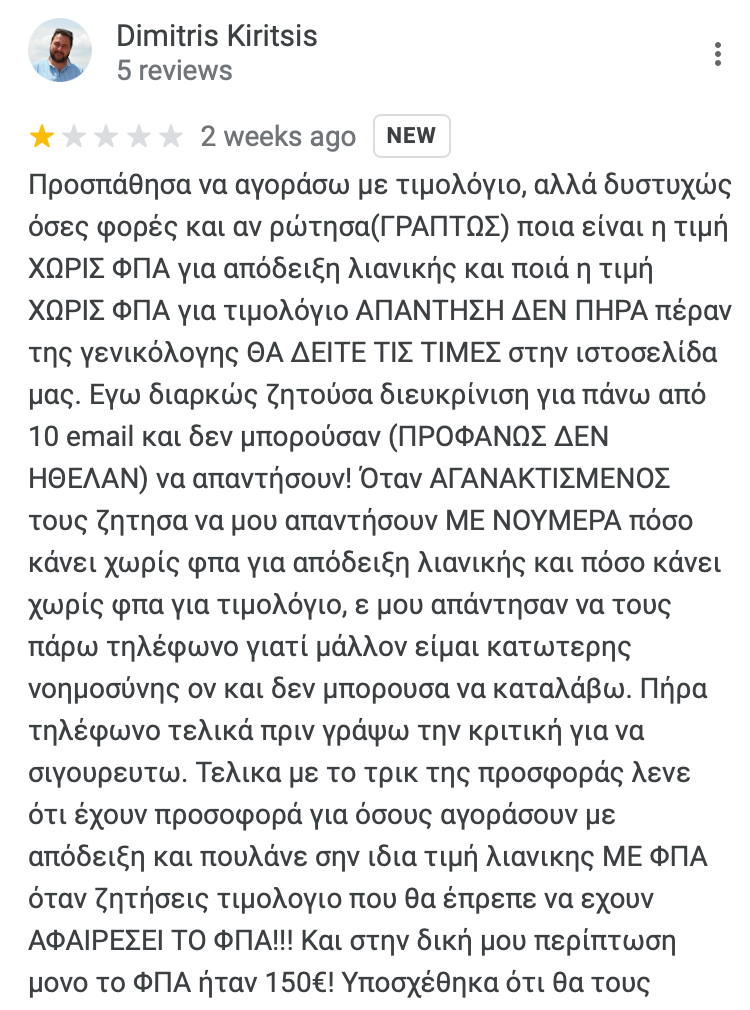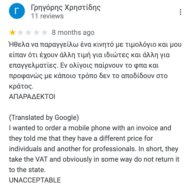 Πιστεύω ότι τέτοια μαγαζιά εκμεταλλεύονται το άρθρο 39Α παίρνουν τα προϊόντα χωρίς ΦΠΑ και τα μεταπουλάνε κάτι το οποίο είναι παράνομο. Αν προσέξεις στα σχόλια στο google maps κάποιοι που θέλανε να το πάρουν με 39Α από το μαγαζί τους δεν μπόρεσαν.