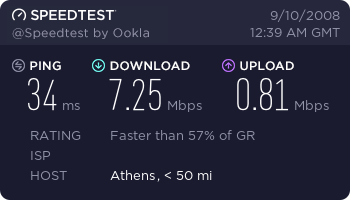 Ο καλύτερος server που έχω κατεβάσει είναι στον www.apple.com που έχω φτάσει μέχρι και 1.3 mb το δευτερόλεπτο. 100 mb σε 76 δευτερόλεπτα