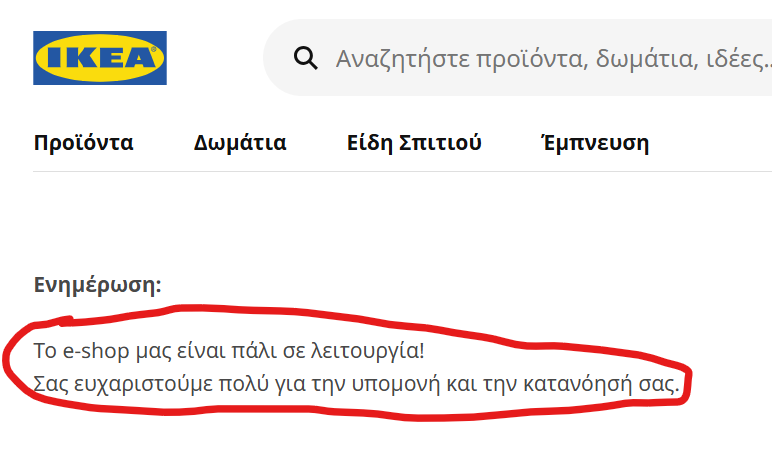 Γενικά να ξέρετε το eshop των ικεα λειτουργεί ανεξάρτητα από τα φυσικά καταστήματα, ειναι σαν ένα καταστημα από μόνο του απομονωμένο. Δηλαδή αν ένα προϊόν έχει απόθεμα στο κατάστημα της Θεσσαλονίκης, αλλά δεν είναι διαθέσιμο για online παραγγελία στο estop, το eshop του ικεα δεν μπορεί να το παρει από το φυσικό κατάστημα οπου υπάρχει διαθέσιμο και να το φερει (με εσωτερικη διαμετακομιση/διακινηση) στο δικό του αποθεμα ώστε να το στείλει με μεταφορική κατόπιν online παραγγελίας.
