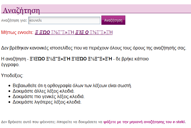 Και στην αναζήτηση έχει πρόβλημα, ή θα τα βγάζει κινέζικα ή θα με πετάει σε google error.