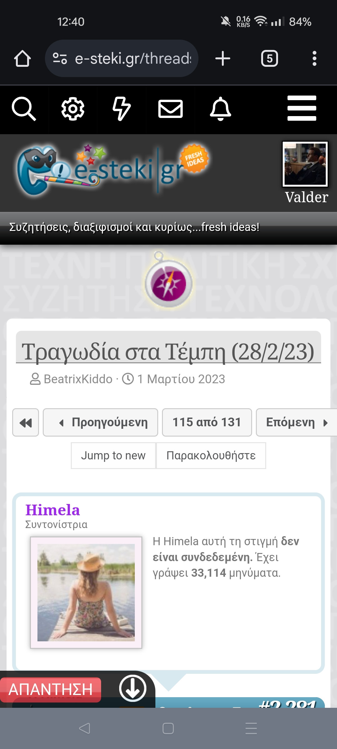 Προσπαθησα να διαβασω το θεμα των Τεμπων και οκ με εβγαλε σε μια σελίδα πχ 110 απο 134 ας πουμε. Και ηθελα να παω στην τελευταια αμέσως να δω τα πιο πρόσφατα. Για κινητό μιλάω με Chrome.