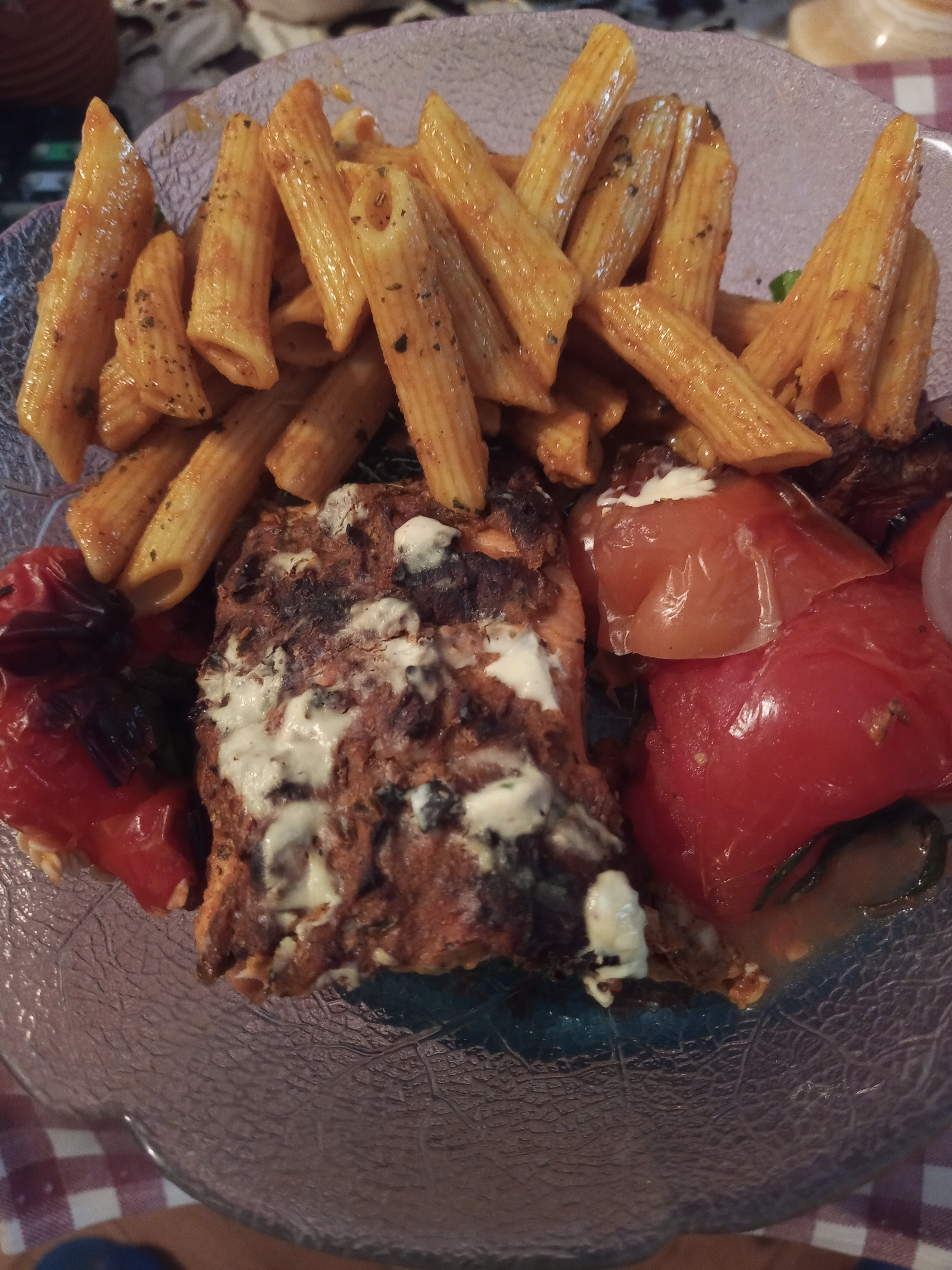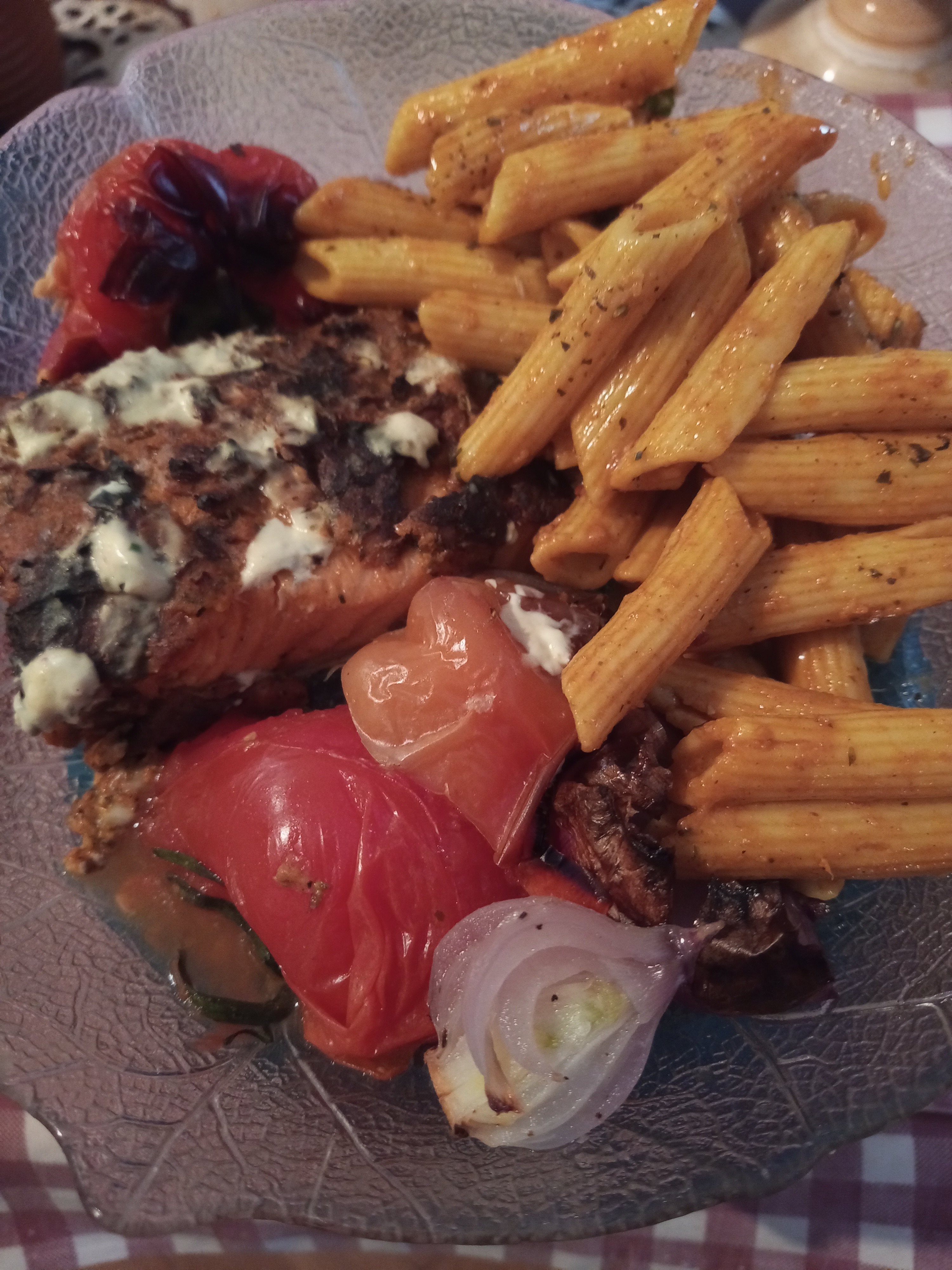 Σολομός στο Γκριλ και μακαρόνια ολικής.