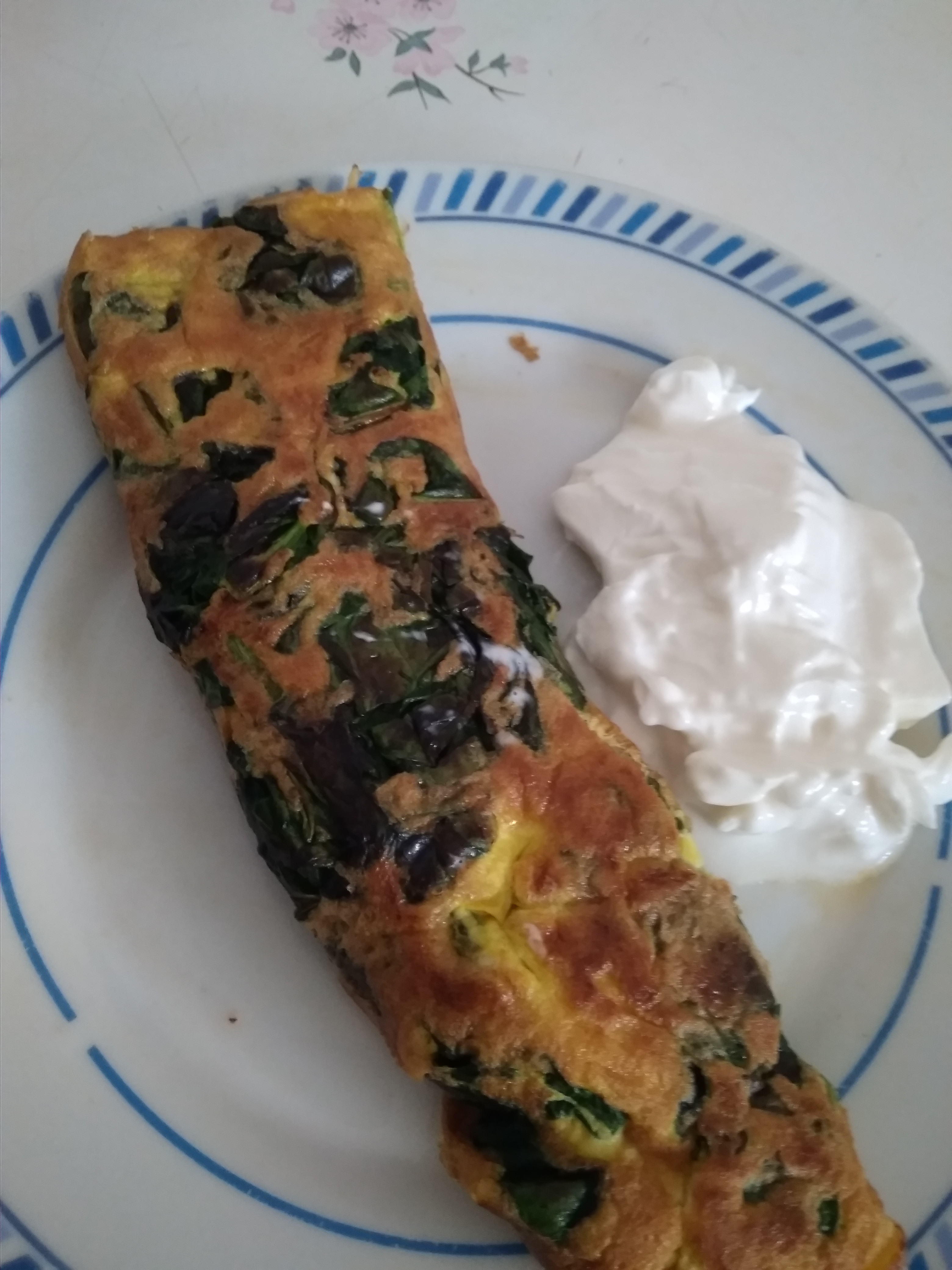 Εγώ έβαλα 1 κουταλιά της σούπας λάδι και έριξα το σπανάκι έτσι ώστε να τσιγαριστει και μετά κανονικά την ομελέτα όπως ξέρουμε