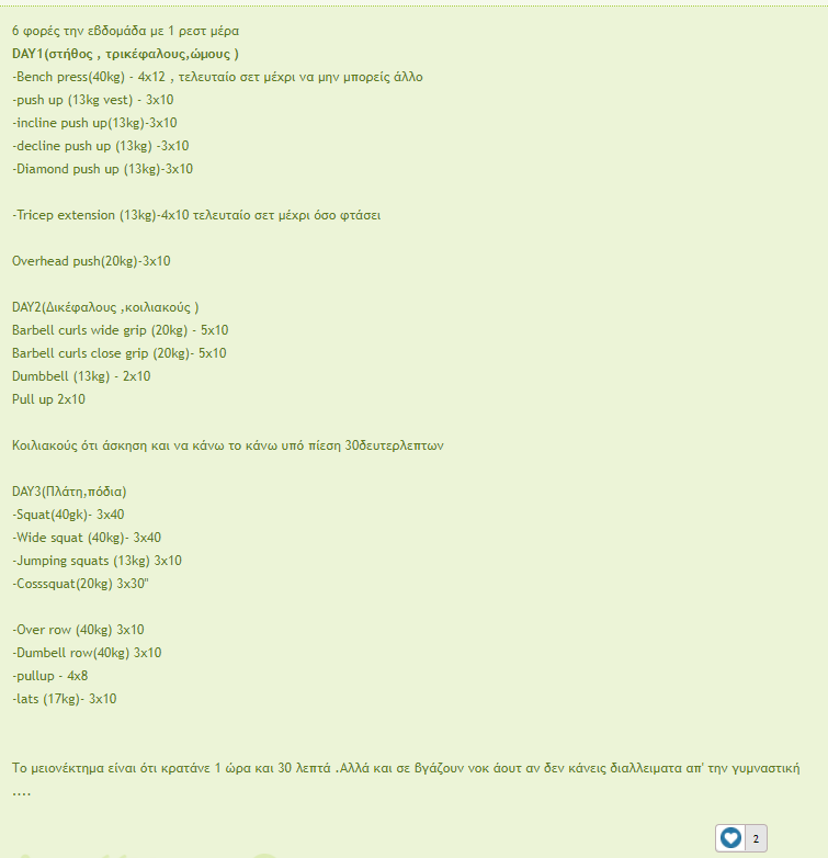 Όταν δεν είχα μπάρα είχα το εξής προγράμμα για στήθος