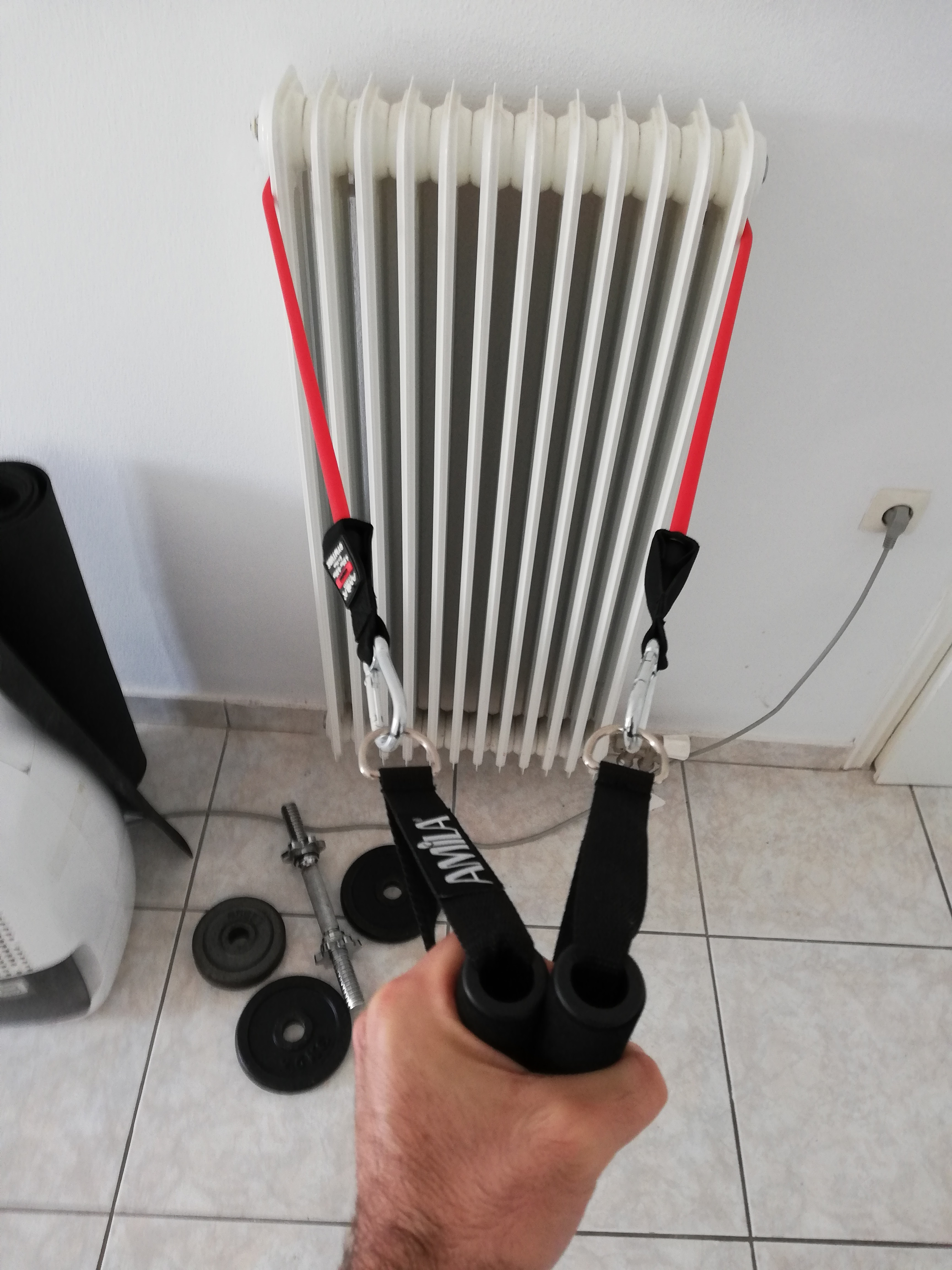 δοκιμασα σημερα μια πιεσεις στηθους κ μια κωπηλατική για πλάτη. Εβαλα το λάστιχο στο καλοριφερ και πιεσα μπροστα τους γάτζους με τη πλατη στραμενη προς το καλοριφέρ κ μετά τραβηξα με το στηθος στραμενο προς το καλοριφερ το έβλεπα δηλαδη οπως πιανω κ στη φωτο (κωπηλατικη για πλατη). Η κινηση ειναι ωραια οσο απομακρυνεσαι κ τεντωνει τοσο δυσκολοτερο γινεται! Βεβαια θα παρω σιγουρα και αλλα λάστιχα γιατι μονο με 43 κιλά συνολική αντισταση ειδικα για πιεσεις στηθους δεν με βλέπω αλλα οκ αρχη ειναι ακομα![]()