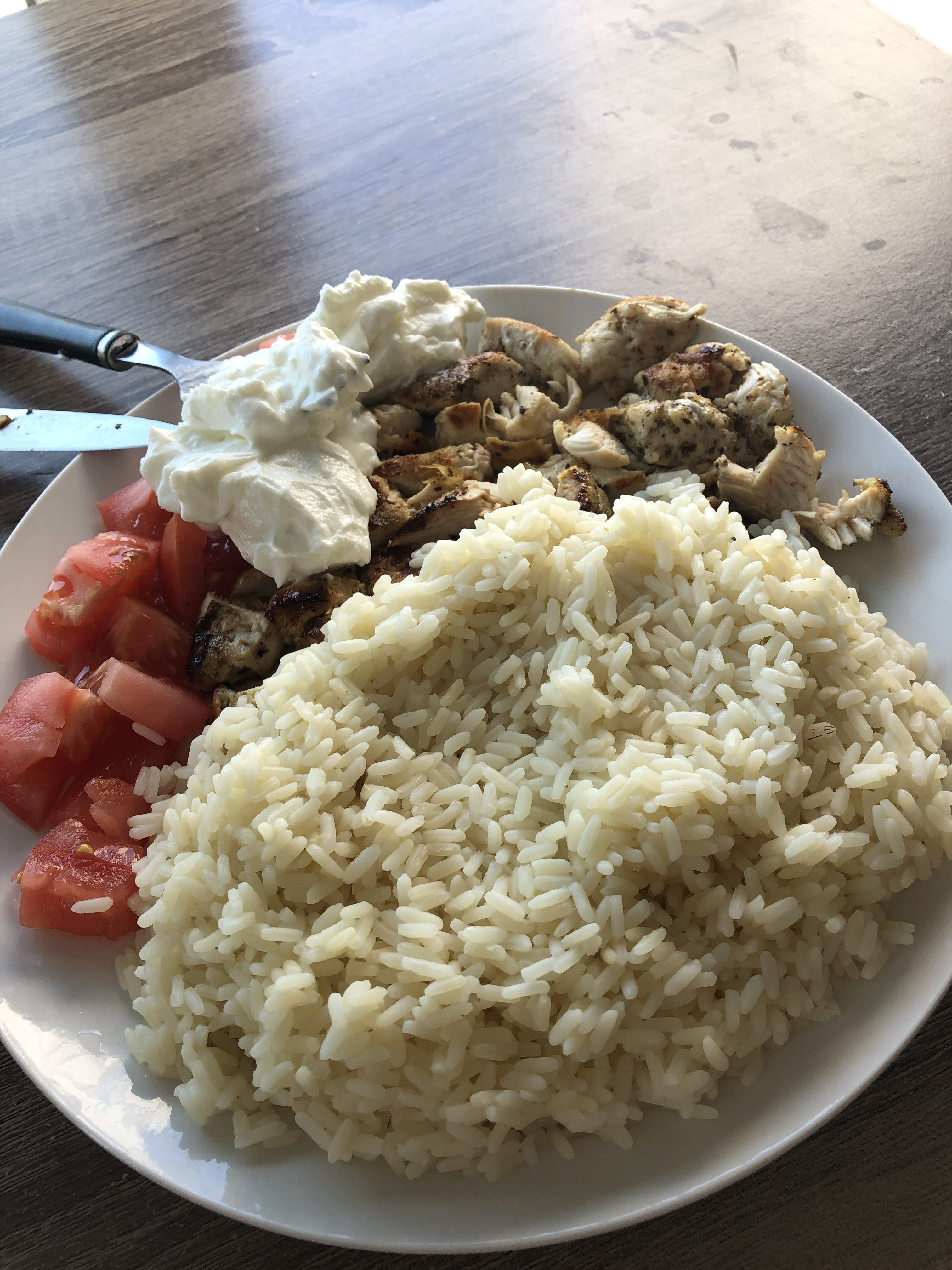 Μεσημέρι είχε Μπιφτέκι χοιρινό, 2κσ γιαούρτι, μικρή πατάτα βραστή, 1/2 Milko free.