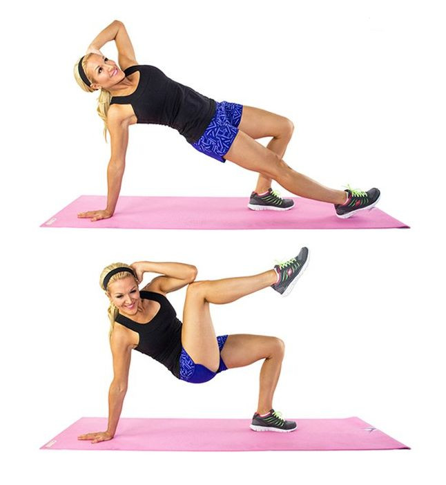 4. Ένα abs combo με εκρηκτικά mountain climbers σε κάθε πόδι (τιναγμα και τα δύο πόδια και μάζεμα-τεντωμα ποδιού όσο είναι ακόμη στον αέρα, να άλλη μια άσκηση που δεν μπορώ να περιγράψω ανθρώπινα) και μετά plank crossover knee to elbow σε κάθε πλευρά (ευτυχώς βρήκα εικόνα