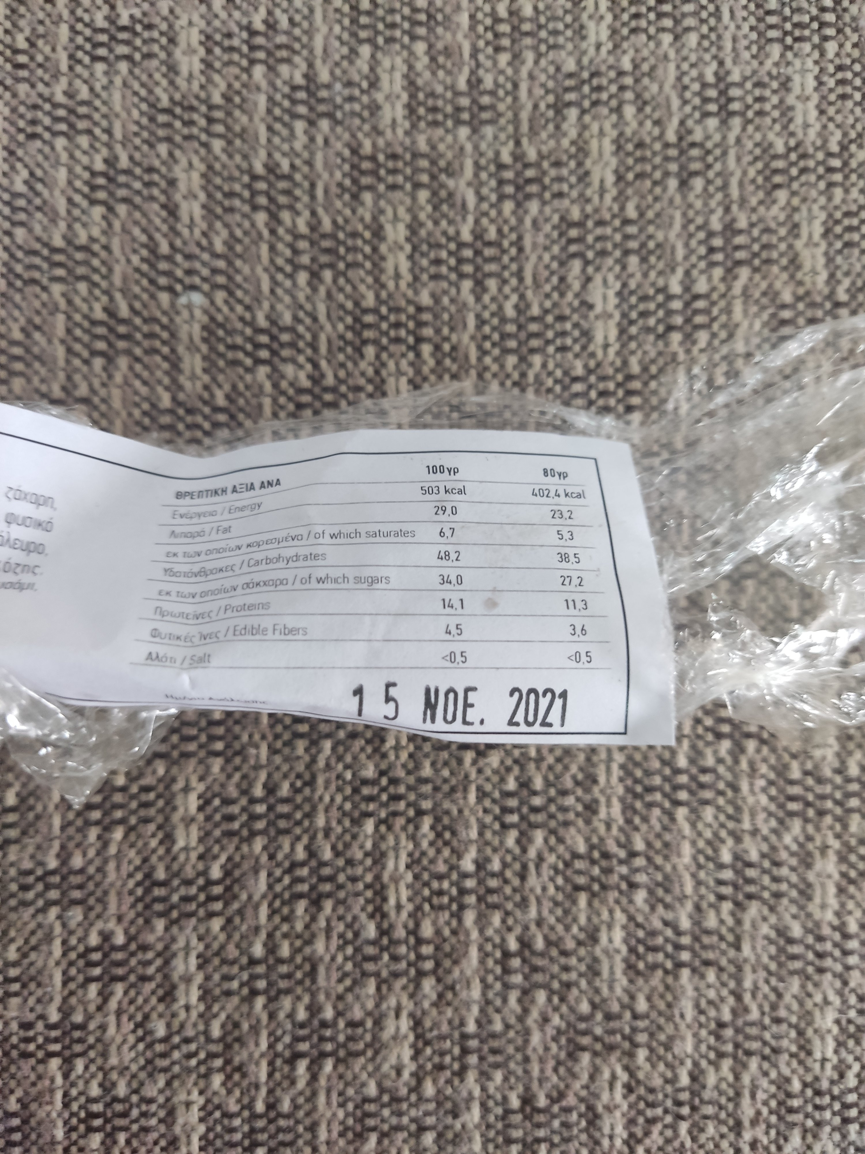 Εγώ έφαγα ένα μήλο ένα ποτήρι γάλα πλήρες και μια τέτοια μπάρα που είχα πάρει μαζί μου 80gView attachment 87774