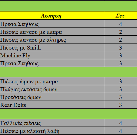 Έλεος αμα τα αθροισεις καταληγεις να κανεις περισσοτερα σέτ στους ωμους που ειναι μικρη μυική ομάδα απο οτι στο στήθος.