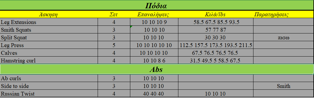 ** Κοιλιακους εκανα οτι νανε ,οτι σκεφτω εκεινη την στιγμη σε σουπερσετ δισετ