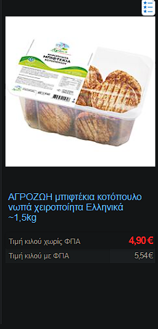 Δεν έχω βρει φιλέτο κοτας 5-6 ευρώ ως τώρα. Σκέφτομαι να περαδω κάποια μέρα από το συγκεκριμένο μαγαζί. Έχει καλές τιμές. Margetis λέγεται στα κάτω πατησια Αθήνα.