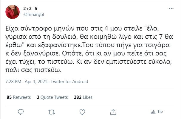Χιλιες φορες καλυτερα να σου πει αυτο, παρα να χαθει ετσι στο ξαφνικο, και να μεινεις εσυ με το ερωτηματικο.