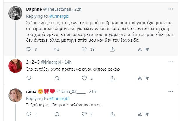 Ενας μου ζητησε να βγουμε, δεχτηκα και εξαφανιστηκε. Ενα μηνα μετα ξαναεμφανιστηκε. Θα του απαντησω σε εναν μηνα.